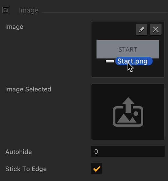 Drag the start.png file from the graphics folder into the image slot of the start button. You can do the same thing for other items in the main menu.