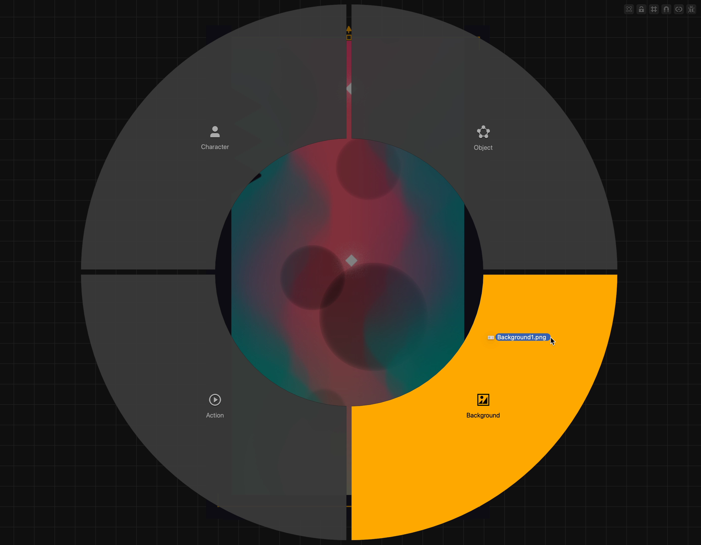 To enhance the look of our menu, let’s add a few images to it. Drag and drop the character image into Buildbox. When Buildbox gives us the drag-and-drop-wheel, drop the image on the image option.