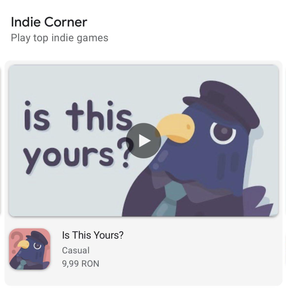 Another major shoutout goes to Tepes Ovidiu, whose clever and charming game Is This Yours? was featured in the Indie Corner on Google Play!
