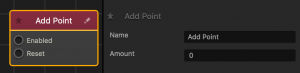 This action node increases the point score type by a specified amount. For details on how to display your score by score type, see Add Game Score.