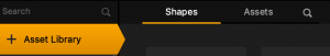 - To find the asset or shape you need in the Asset Library, click the respective tab or click the Search icon and type the name of the asset.
