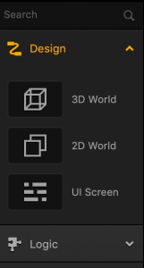 Most Buildbox workspace screens have the same predictable layout and functionality, with some parts present in all screens and others being specific to certain workspaces.