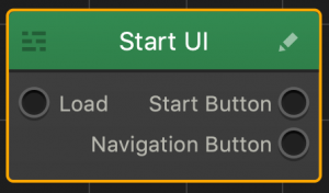 After you drag the button from the Asset panel to the Editor, an additional output appears in the corresponding UI node on the Mind Map. After you rename the button and customize its options, the name of this output will be updated accordingly.