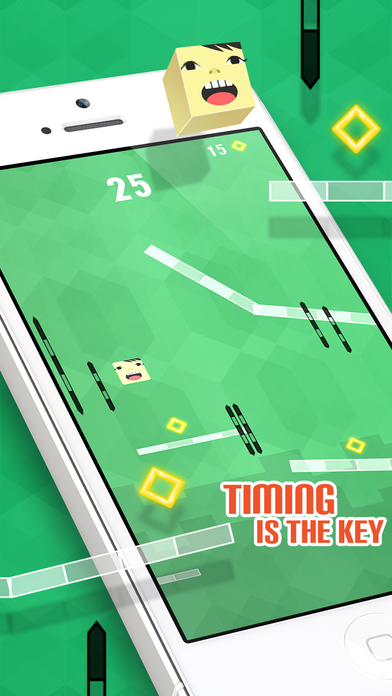 Get support from the increasing pitch of a mesmerizing musical note as you score more. Just tap to jump the normally bouncing character and save it from the black spike-like lines and gaps with infinite depth.